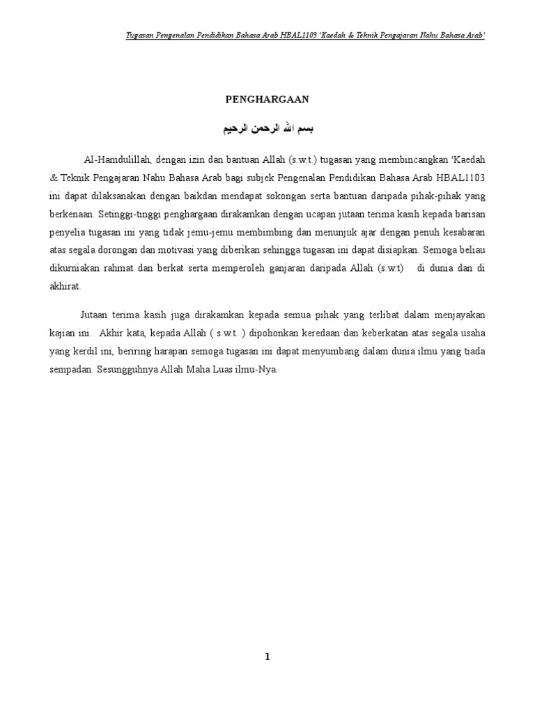 Contoh Penghargaan Assignment Dalam Bahasa Arab