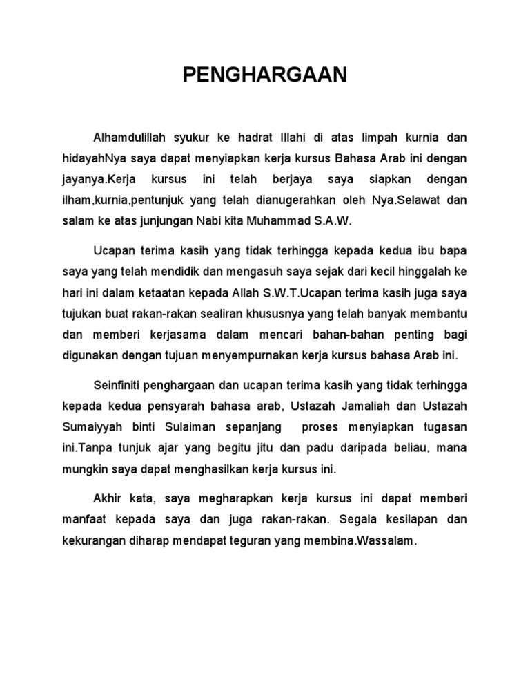 Contoh Penghargaan Kerja Kursus Dalam Bahasa Arab Kyla Mcdonald